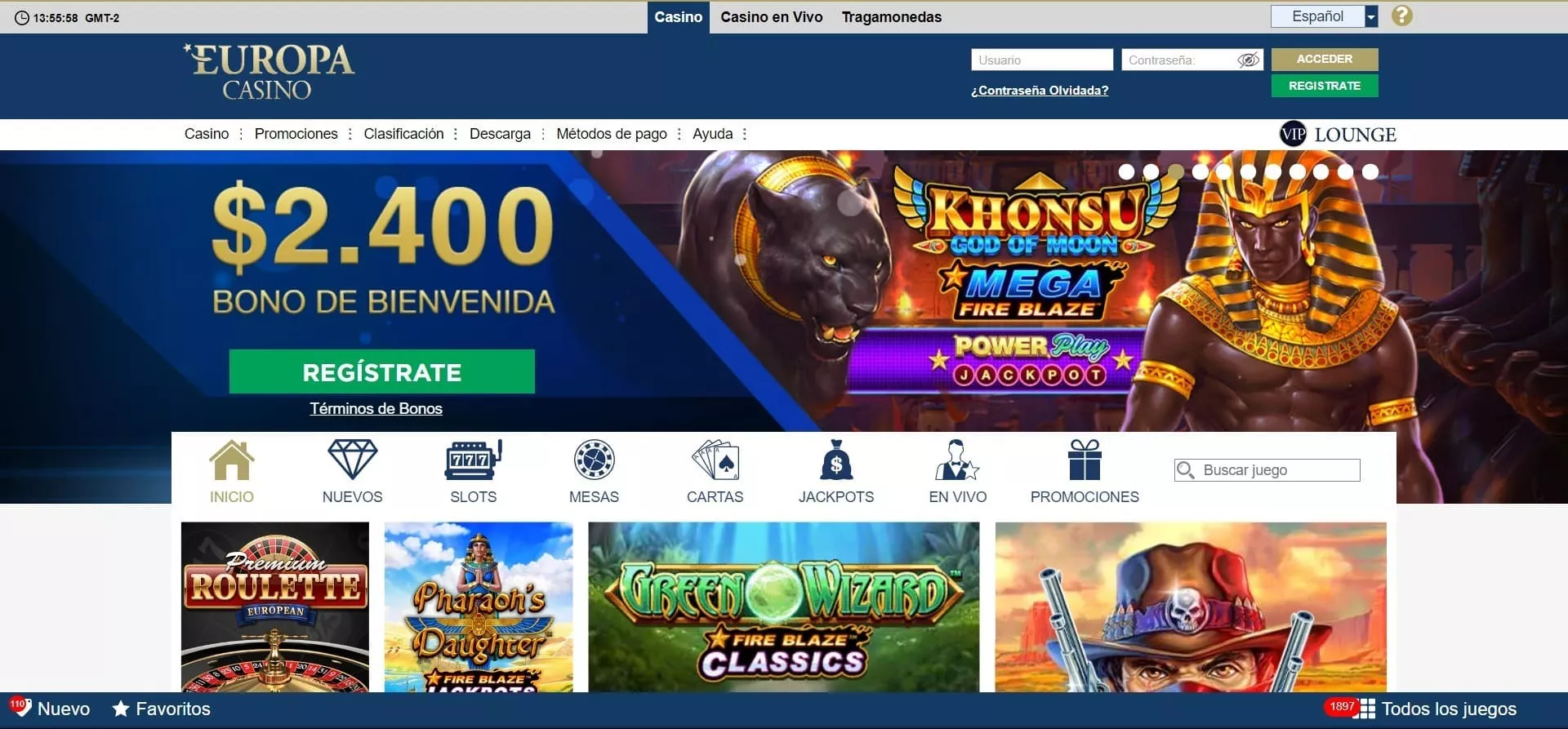 Ve al sitio web oficial de Europa Casino.