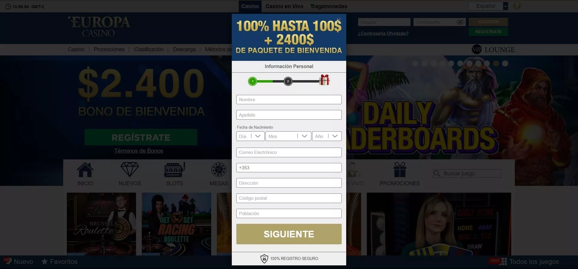 Casino Europa registro es un proceso muy sencillo y a cambio de hacerlo puedes llevarte el bono Europa Casino. Tan solo sigue la siguiente guía paso a paso: